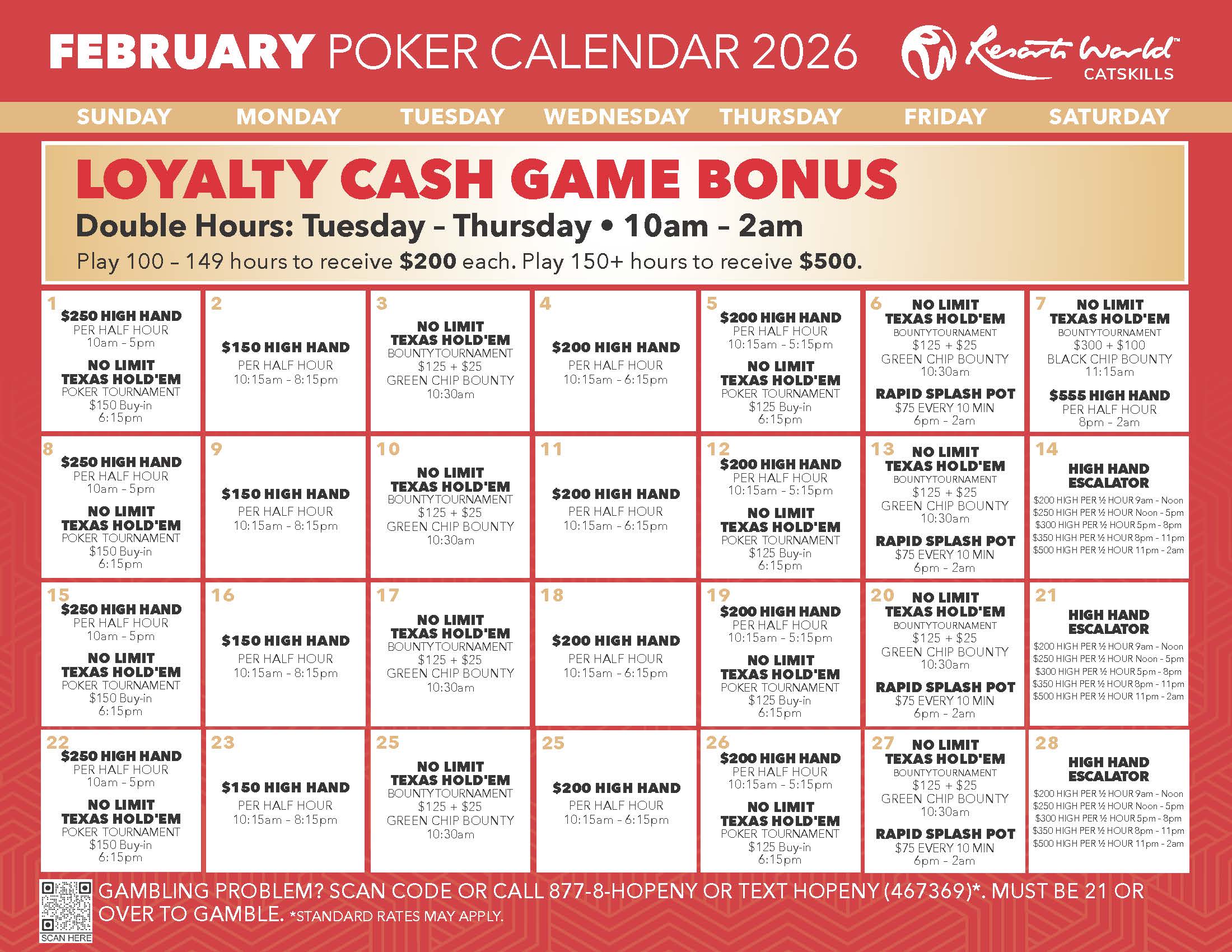 FEBRUARY POKER CALENDAR FEBRUARY PROMOTIONAL RULES
