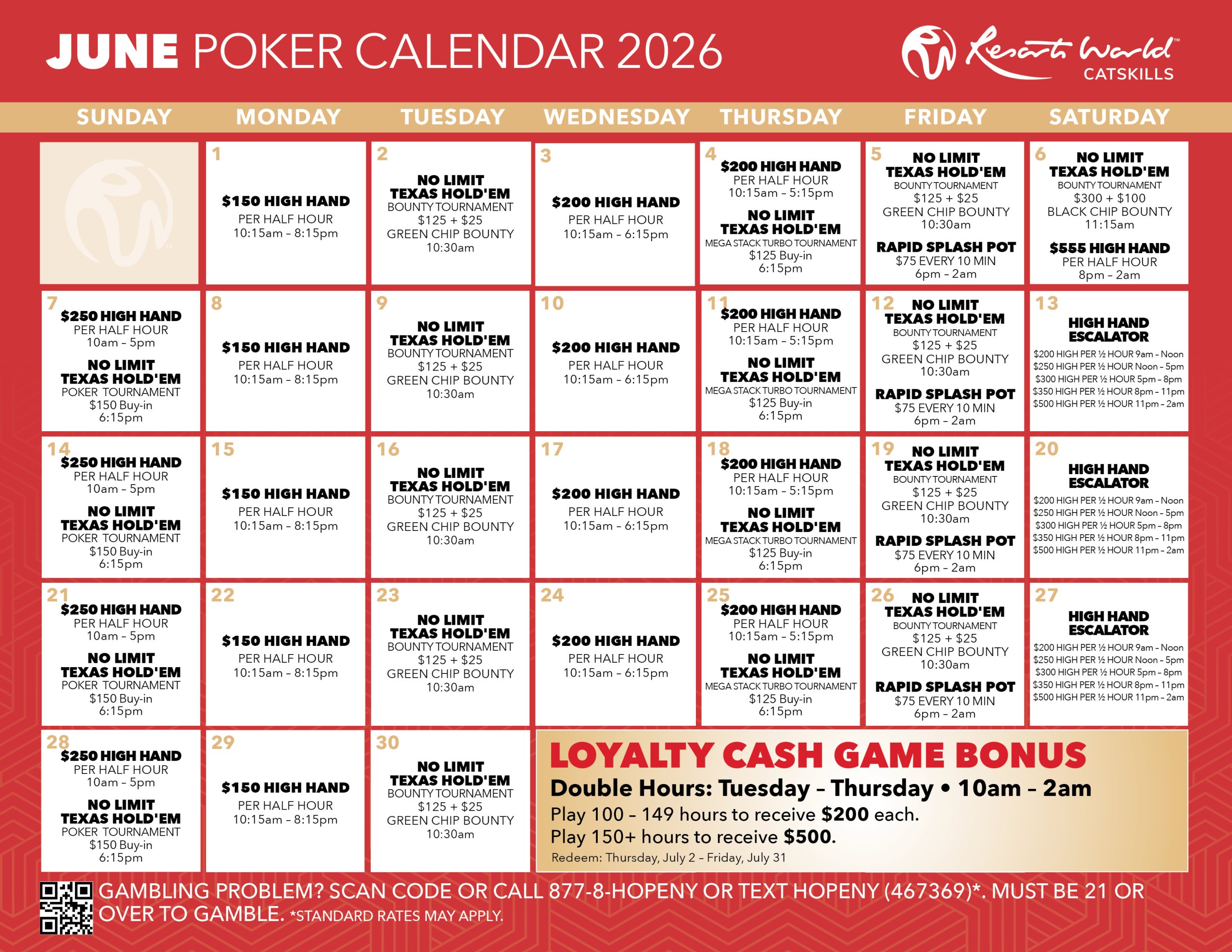 JUNE POKER CALENDAR JUNE PROMOTIONAL RULES