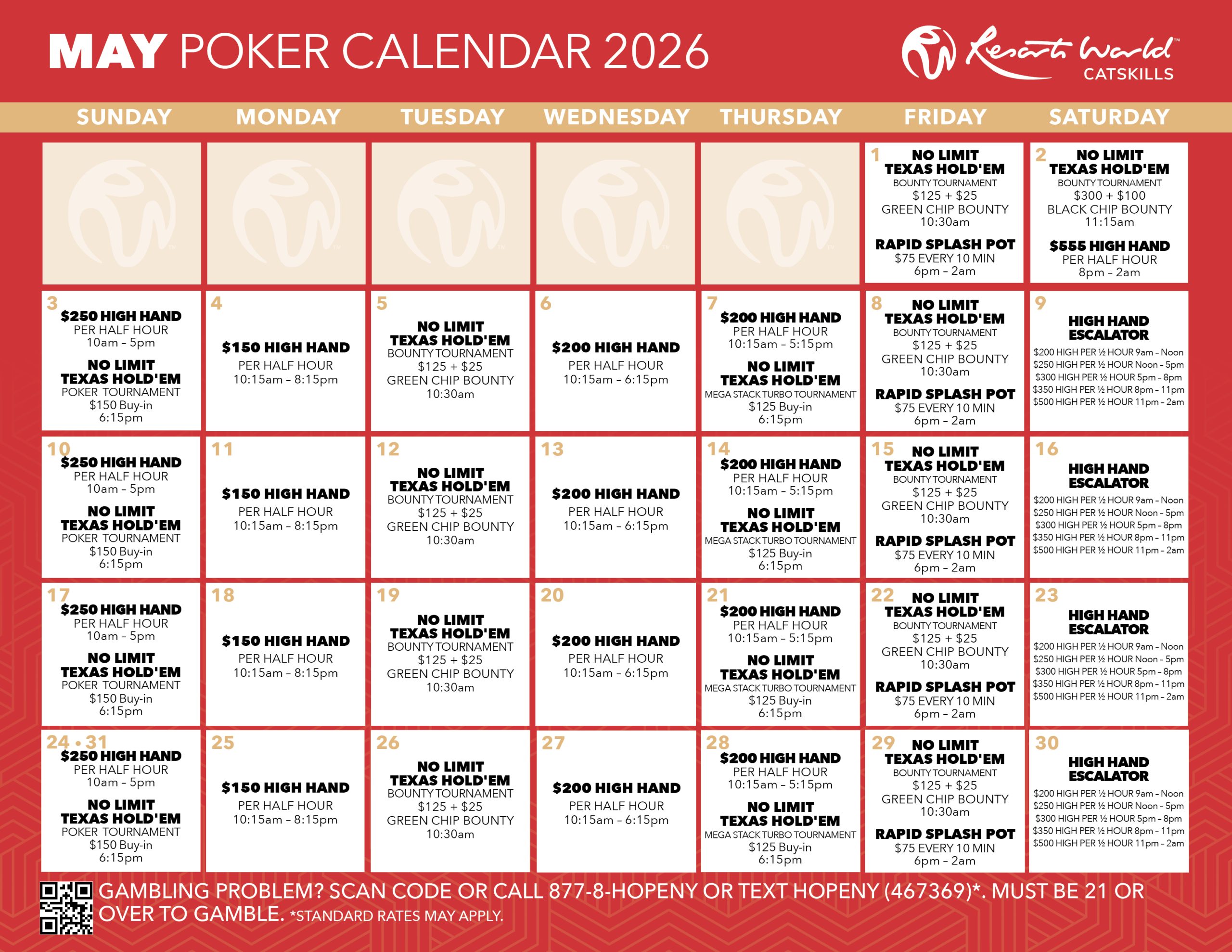 MAY POKER CALENDAR MAY PROMOTIONAL RULES