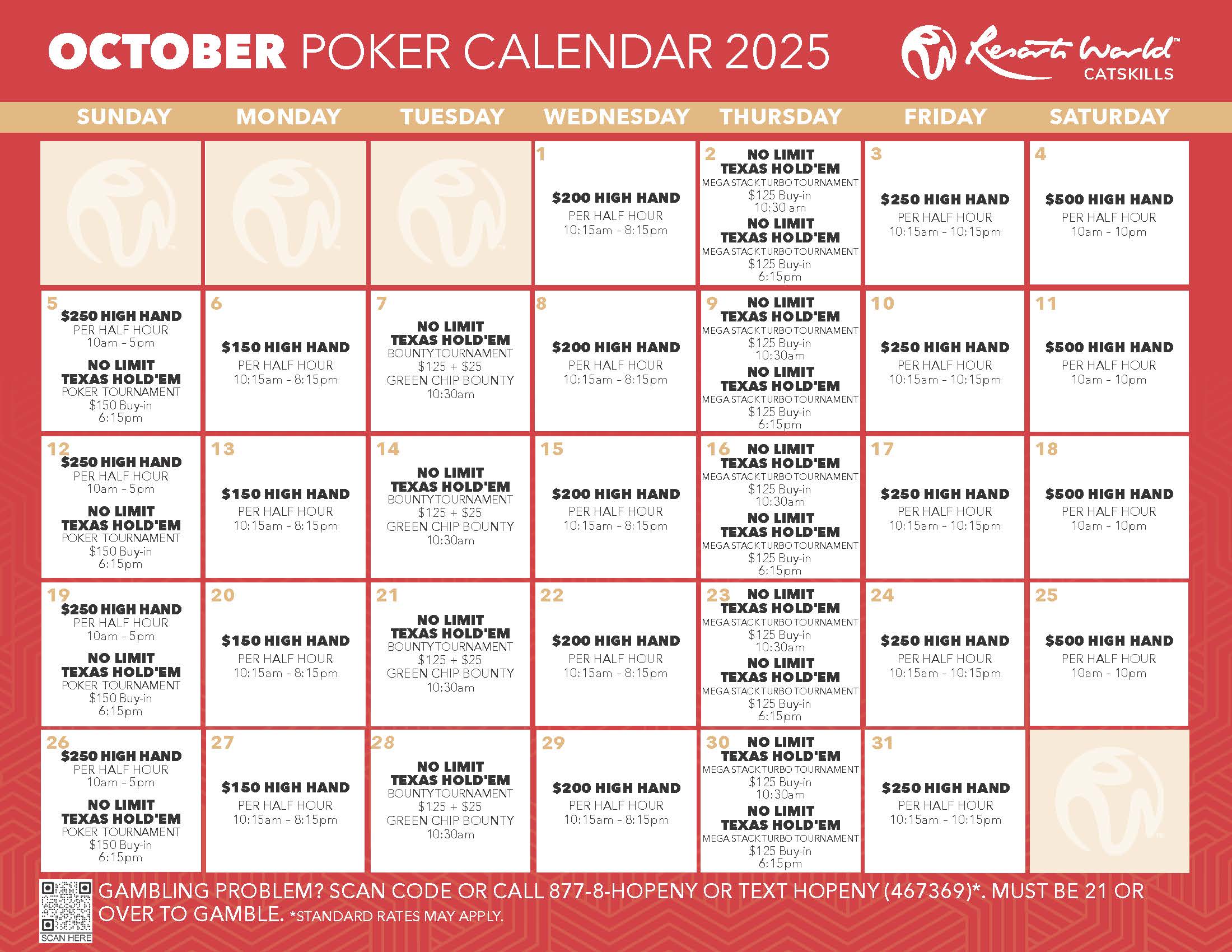 OCTOBER POKER CALENDAR OCTOBER PROMOTIONAL RULES